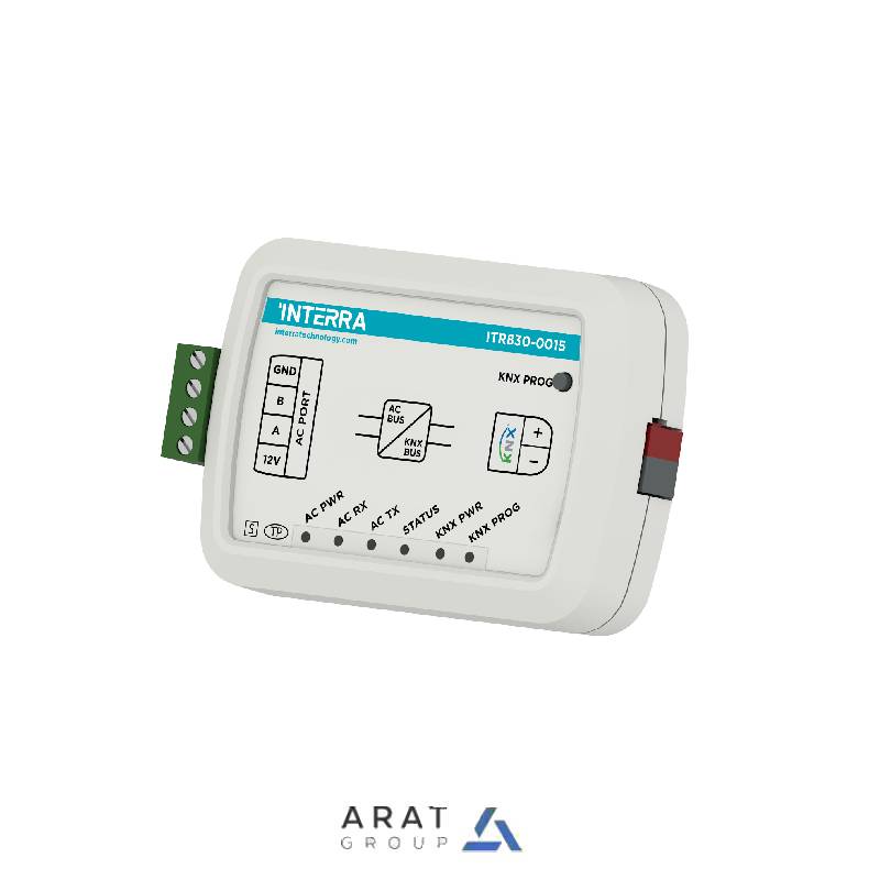 ITR830-0015 یک دروازه تهویه مطبوع است که برای نظارت و کنترل تمام پارامترهای عملکرد کولر گازی توشیبا از طریق خط اتوبوس KNX استفاده می شود. Toshiba VRF AC – KNX Gateway با مدل هایی در انواع VRF که در لیست سازگاری منتشر شده توسط Interra طبقه بندی شده اند سازگار است. Toshiba VRF AC – KNX Gateway دارای قابلیت نصب آسان است و می تواند در داخل یونیت داخلی AC خود نصب شود یا در محل مناسبی دور از کولر گازی نصب شود، یک طرف را مستقیماً به مدار الکترونیکی یونیت داخلی AC و از طرف دیگر متصل می کند. مستقیماً به گذرگاه KNX بروید.