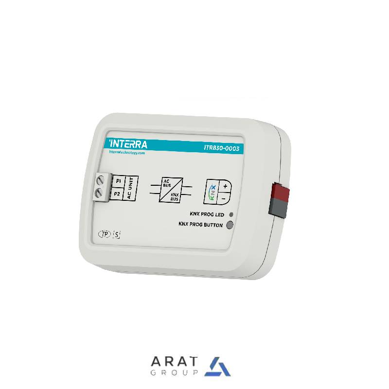 ITR830-0003 یک دروازه تهویه مطبوع است که برای نظارت و کنترل تمام پارامترهای عملکرد کولر گازی صنایع دایکین از طریق خط اتوبوس KNX استفاده می شود. Daikin Sky & VRV AC – KNX Gateway با مدل هایی در انواع Sky & VRV که در لیست سازگاری فروخته شده توسط Daikin Industries طبقه بندی شده اند، سازگار است. Daikin Sky & VRV AC – KNX Gateway دارای قابلیت نصب آسان است و می تواند در داخل یونیت داخلی AC یا در مکانی مناسب دور از کولر نصب شود، یک طرف را مستقیماً به مدار الکترونیکی یونیت داخلی AC وصل می کند و در سمت دیگر به طور مستقیم به اتوبوس KNX.