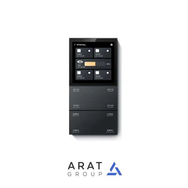 این پنل هوشمند یک راهکار کامل برای مدیریت روشنایی، صدا و کنترل تجهیزات خانه هوشمند شماست. به لطف نمایشگر لمسی ۴ اینچی با رابط کاربری روان و سیستم عامل Android 8.1، شما میتوانید بهراحتی تنظیمات را مشاهده و کنترل کنید.
