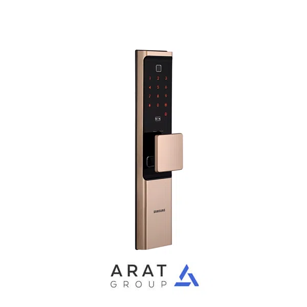قفل هوشمند سامسونگ مدل SHP-R80 نسل جدیدی از قفل های دیجیتال با قابلیت اتصال مستقیم به شبکه وای-فای ۲.۴ گیگاهرتز و کنترل از راه دور است. این قفل و دستگیره هوشمند با طراحی Push-Pull (فشار/کشیدنی) ویژه، امکان باز کردن درب با اثر انگشت، رمز عبور، کارت RFID، اپلیکیشن موبایل، موبایلکی (NFC) و کلید مکانیکی را فراهم کرده است. اگر درب را فراموش کردید قفل کنید، حالت قفلخودکار فعال میشود و همچنین با استفاده از اپ موبایل میتوانید رمزهای موقت زمانبندیشده یا کنترل از راه دور داشته باشید.
